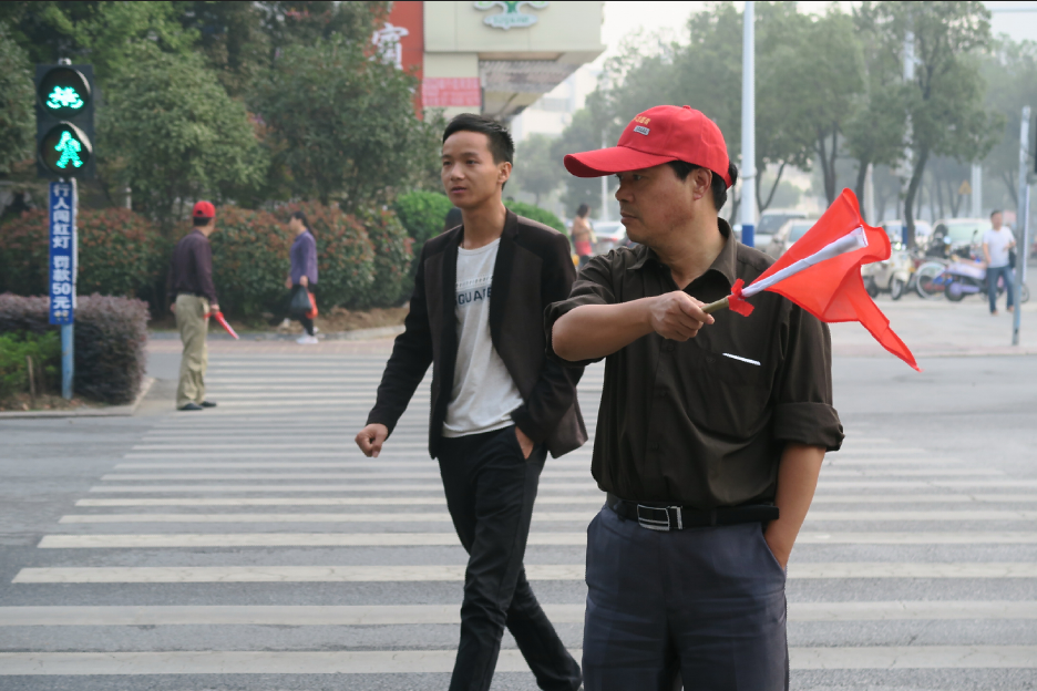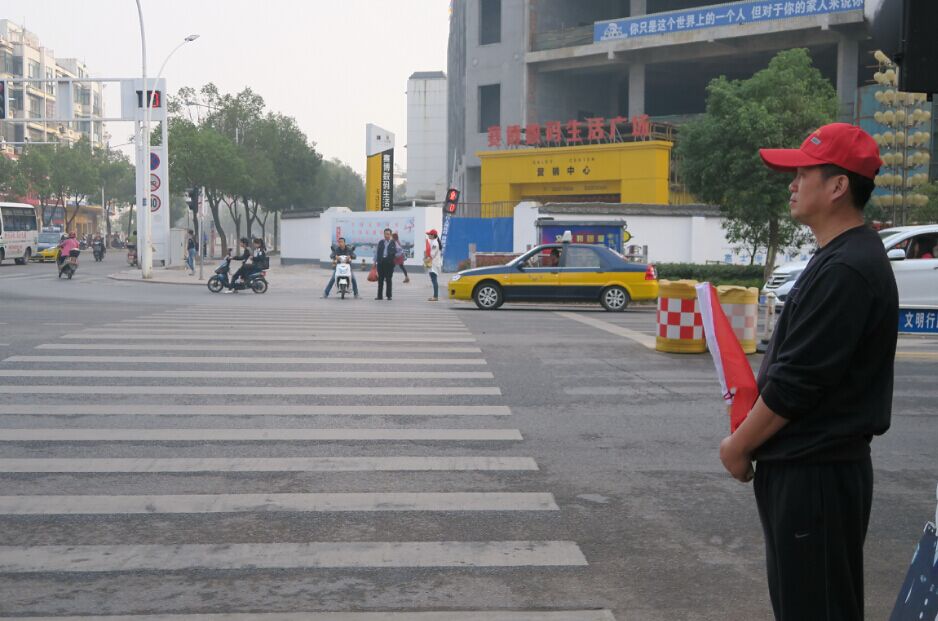 10月26日,市林业局交通志愿者头戴小红帽,手执小红旗,在长江路与建设路交叉十字路口联合开展“我奉献、我快乐”交通志愿服务活动。