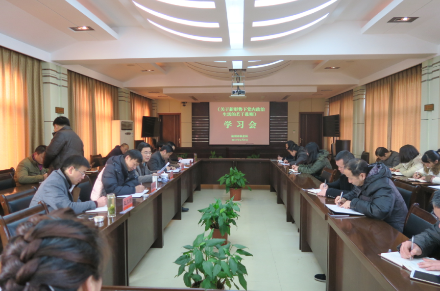 在学习《关于新形势下党内政治生活的若干准则》时,汪力局长指出:十八届六中全会审议通过的《关于新形势下党内政治生活的若干准则》和《中国共产党党内监督条例》具有里程碑意义,标志着全面从严治党向制度化深化。《准则》从坚持党的政治路线和思想路线、坚持集体领导,反对个人专断等十二条,阐述了维护党的集中统一,增强党的团结,巩固党的组织和纪律,提高党的战斗力的重要性和具体要求,《条例》紧紧围绕全面从严治党这个主题,为新形势下加强和规范党内政治生活、加强党内监督提供了根本遵循,全体党员干部要高度重视深入学习,大力营造学习宣传贯彻全会精神的浓厚氛围,全体干部职工要积极继承和发扬党内政治生活的优良传统和基本规范,又要结合新的形势和任务与时俱进,推动党内政治生活和党内监督制度化、规范化、程序化,要进一步发挥好强自律、树标杆、做表率的作用,一定要把《准则》和《条例》内化于心、外化于行,切实做到对党的绝对忠诚,以上率下、以身作则,积极营造良好的党内政治生态,以不断深化改革、规范权力运行的强大动力。