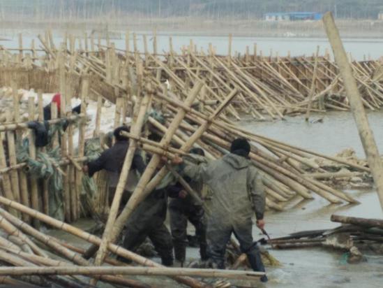 督查组一行肯定了贵池区、东至县近期围网拆除、退田还湖、退养还湿等工作,但当看到因升金湖大桥拦水坝阻水,上湖水位仍然过高时,督查组领导责成相关单位负责同志务必服从大局,尽快拆除,降低水位。在东至县政府及相关部门的支持下,2月16日下午,升金湖保护区管理局组织人员进行现场踏查,制定了拆除方案。依据拆除方案,先期拆除水坝中间阻水设施,待湖水水位下降、水流减缓后再清除剩余设施。2月18日上午,保护区管理局组织了升金湖大桥周边渔民对拦水坝中间阻水围栏进行了拆除,进一步扩大了水流下泄速度。目前,拦水坝拆除后升金湖上湖水位正逐渐下降,湖床显露晒滩范围进一步扩大,利于湿地生态环境的改善和珍稀候鸟的安全越冬。