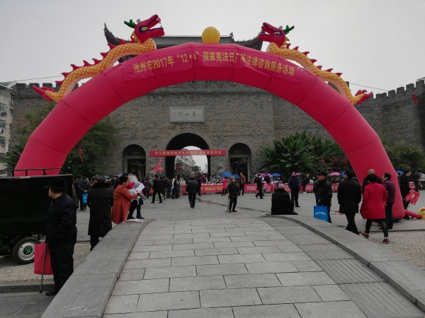为深入贯彻落实党的十九大精神,增强全民法治观念,推动全社会树立宪法意识,进一步落实“谁执法谁普法”普法责任制, 2017年12月4日上午,,池州市林业局参加了市法宣办组织的“12·4”国家宪法日主题宣传活动暨秀山门广场法律咨询服务活动。