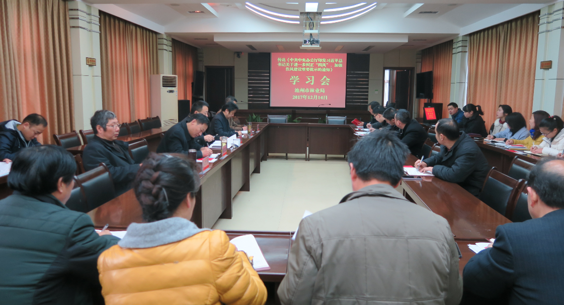 12月14日上午,市林业局召开专题会,学习传达了《中共中央办公厅印发习近平总书记关于进一步纠正“四风”、加强作风建设重要批示的通知》、新党章总纲和池纪通【2017】13号文件《关于三起扶贫领域典型问题的通报》。