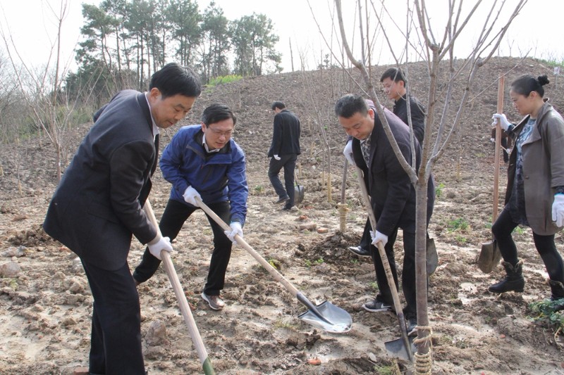 启动仪式后,王宏书记率先挥锹植树,现场气氛热烈,广大干部职工分工合作,有的扶苗、有的填土,两人一组、五人一群地忙活开来……原本安静的小山坡,顿时热闹了起来。据统计,平天湖植树现场当天共1000余人参加植树,栽植樱花、桂花、垂柳等1582株。一棵棵新栽的树苗傲然挺立,为平天湖风景区增添了几许新绿。