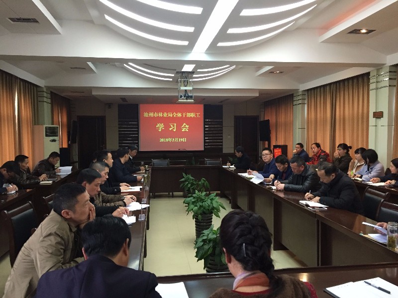 3月19日,市林业局召开全体干部职工会议,学习2018年政府工作报告,并结合两会新气象新精神部署全局林业工作。