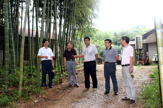 8月20日上午,池州市林业局王文联副局长一行在东至县林业局江锡志副局长的陪同下,到该县张溪镇东湖村调研毛竹产业发展工作。