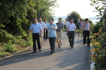 (图为8日下午,国家林业局华东林业调查规划设计院周琦副院长检查组一行,在省林业厅潘法祥副厅长、池州市夏吉苗副市长和贵池区樊泽明书记、袁振兴副区长以及市区林业局负责人的陪同下,对我区杏花园文化旅游区、平天湖湿地生态林业建设进行了实地查看。)