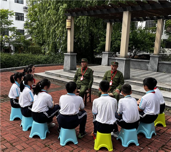 在与学生互动环节,老兵何嗣宽、姚尚友与池州市第十一中学的师生们面对面交流,他们用生动丰富、富有感染力的语言,结合自己的军旅经历,为同学们讲述红色故事。聆听着老兵党员们的一席饱含深情、抑扬顿挫的讲述,学生们纷纷表示:“老一辈革命军人的崇高思想境界、坚定理想信念和浩然革命正气是自己前进路上学习的榜样,我们会珍惜如今来之不易的美好幸福生活,要更加努力学习、将来回报社会。”