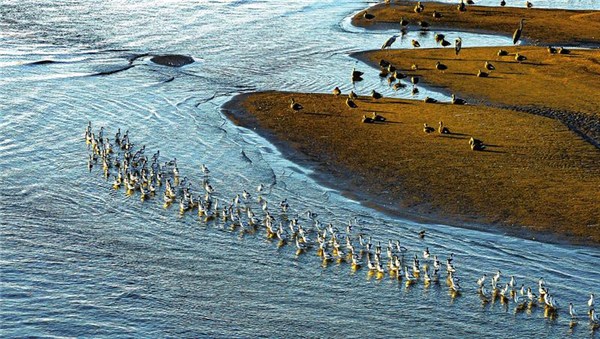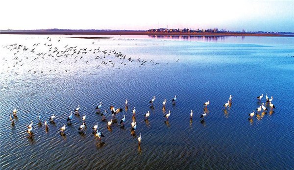 升金湖,是亚洲最大的湿地,有“中国鹤湖”之称,是国际上重要的珍稀候鸟越冬地之一,如国家一级保护动物白头鹤、白鹤、东方白鹳等。近些年,随着渔民上岸、拆网禁捕等生态修复措施的实施,升金湖湿地生态系统自然恢复速度加快,每年在此越冬繁殖的候鸟种类达175种,超过10万只。通讯员杨科甲 赵传群 摄