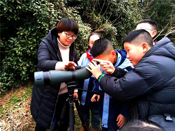 今年2月2日是第28个世界湿地日,主题是“湿地与人类福祉”。近日,平天湖风景区湿地公园管理处联合城关小学组织开展湿地日亲子观鸟活动。 图为工作人员指导学生利用望远镜,近距离观察湿地内的各种鸟类和水生植物。 记者 方雯 通讯员 尹莉 摄