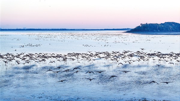 10月末,西伯利亚等北方地区,寒风卷着碎雪掠过大地。大雁、小天鹅等水鸟早已集结成群,振翅启程,带着对温暖的向往,踏上数千公里的南迁之旅。越过层峦叠嶂,长途跋涉的劳顿与空气里渐浓的温润气息交织,提醒它们目的地到了!
